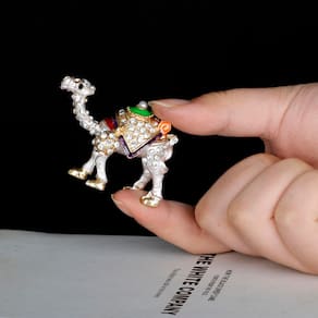 Caixa de joias com estatueta de camelo adornada com strass de cristal esmaltado — Presente colecionável de Dubai com decoração árabe, para mulheres e meninas — Decoração de cômoda e anéis e brincos organizadores — Design requintado: esta caixa de joias apresenta uma decoração árabe deslumbrante inspirada na beleza de Dubai. Seu design de camelo é elaborado de forma complexa, tornando-a uma peça única e atraente. - Strass de cristal esmaltado: a caixa é adornada com strass de cristal de alta qualidade que adicionam um toque de elegância e brilho à sua coleção de joias. Esses strass realçam o apelo estético da caixa — Presente perfeito para mulheres e meninas: se você está procurando um presente especial para um ente querido ou um presente para si mesma, esta caixa de joias é a escolha ideal. Seu significado cultural e belo design o tornam um presente atencioso para mulheres e meninas de todas as idades. Melhora a decoração da casa: além de sua utilidade, esta caixa de joias serve como peça decorativa para a cômoda ou penteadeira de sua casa. Ela adiciona um toque de charme e sofisticação do Oriente Médio à sua sala de estar. Uso versátil: embora seja perfeita para guardar joias, esta caixa também pode ser usada para guardar pequenas lembranças, bugigangas ou outros itens queridos, tornando-a uma adição versátil à decoração de sua casa