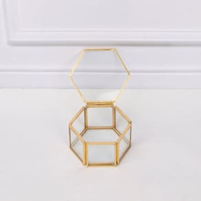 Características destacadas 1. Estilo moderno requintado: esta caixa de joias é uma vitrine de vidro hexagonal com uma aparência elegante e o estilo é muito moderno e requintado. 2. Prático:. Esta caixa de armazenamento pode armazenar suas joias favoritas, joias, anéis, brincos, colares, flores, etc. 3. Boa qualidade: a borda desta caixa de joias é feita de latão e é perfeitamente soldada com vidro transparente. A qualidade é muito boa. 4. Portabilidade: Este produto é pequeno e leve, o que é muito conveniente para transportar cerca de 5. Lindo: este produto é feito com artesanato funcional e requintado, e a aparência é muito elegante e bonita. Veja menos