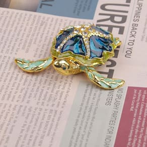 ?Ocasião?: O presente perfeito para qualquer ocasião. Dê de presente no Dia das Mães, Natal, Dia dos Namorados e aniversário. Uma ótima maneira de expressar seu amor por alguém importante em sua vida - ?Produto?: Caixa de joias / caixa de bugigangas/estatueta de tartaruga marinha de metal - ?Tamanho (C x A)?: estatueta de tartaruga marinha - aproximadamente 6,6 x 7,7 cm, ?Peso?: aproximadamente 99 g - ?Material?: O corpo principal desta caixa de bugigangas é um novo material chamado liga de zinco, strass de alta qualidade e esmalte colorido - ?Características?: A caixa de joias é pintada à mão e feita à mão. Não só visa como uma decoração da casa, mas também como um item de artesanato para trazer alegria aos clientes. - ?Ocasião?: O presente perfeito para qualquer ocasião. Dê de presente no Dia das Mães, Natal, Dia dos Namorados e aniversário. Uma ótima maneira de expressar seu amor por alguém importante em sua vida