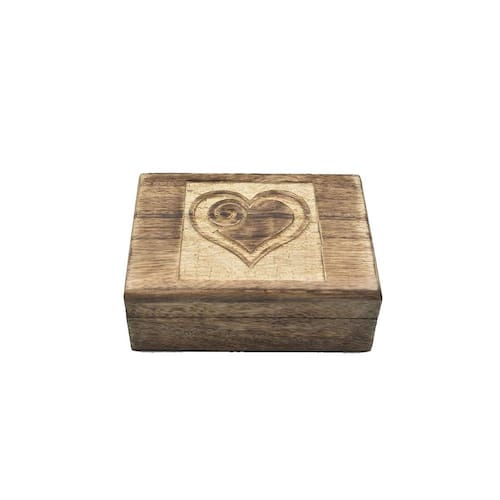 - ? Esculpida à mão: esta caixa é completamente feita à mão, usando ferramentas artesanais simples juntamente com madeira de manga colhida legalmente. Ele vem com entalhes em forma de coração na superfície que significam seu direito de viver e responsabilidade de crescer.