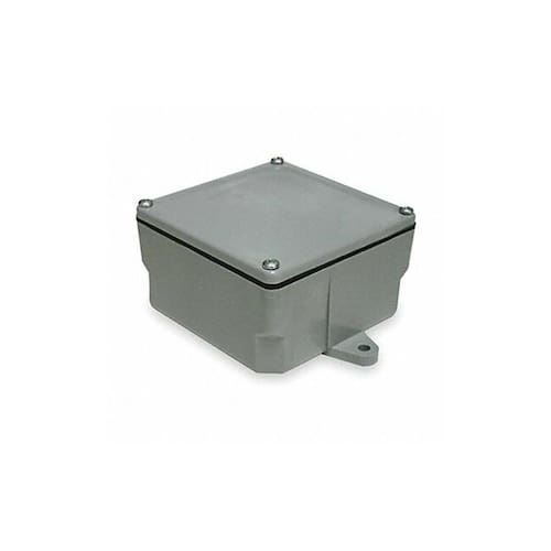 Método de fechamento Parafusos, acabamento em PVC, cor cinza, classificação IP não aplicável, padrões marinhos listados, listados pela UL, profundidade de abertura utilizável de 4 polegadas