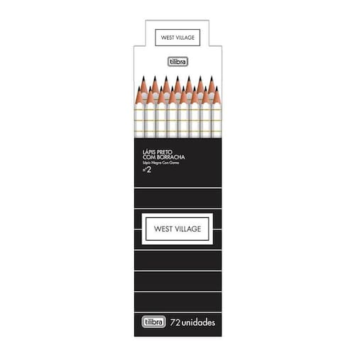 Caixa de Lápis de Escrever Grafite West Village Branco com Borracha 72 Unidades - Tilibra