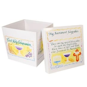 Caixa de lembrança Sacraments - Mede 25,4 cm x 25,4 cm x 23 cm - Com a bela caligrafia de David Mecklenburg - Papelão resistente, brilhante, resistente - Ótimo presente para a família, amigos ou alguém especial