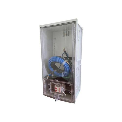 As caixas para medição montadas são utilizadas para instalação conforme padrão de energia elétrica. Fabricada em policarbonato, tem como função básica acomodar o disjuntor, cabos e medidores, por isto é conhecida popularmente como caixa de relógio de luz. Elas seguem o padrão de acordo com a norma das concessionárias de energia. São instaladas no muro lateral no interior da residência, via de regra nas áreas de garagem e/ou jardim, em local visível para fácil leitura, sendo o acesso frontal ao disjuntor.