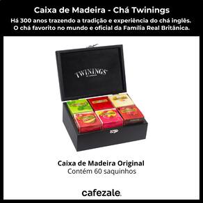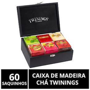 Com esta caixa você leva 300 anos de tradição na arte de fazer chá, e uma coleção preciosa de 6 deliciosas infusões de frutas e ervas, tão perfeitamente combinadas que você sente o aroma e o sabor de cada ingrediente.Sobre o Chá TwiningsA marca de chá favorita no mundo.Chá oficial da Família Real Britânica. Produto importado, fabricado na Europa. Muita tradição e sabor. Mais de 300 anos de história. Conteúdo 1 caixa de madeira com 6 divisões com capacidade para 60 saquinhos de chá.6 caixinhas com 10 saquinhos de chá. Totalizando 60 saquinhos de chá. Sabores Inclusos na Caixa1 CamomilaColhemos nossa camomila durante os meses quentes do ano, selecionando a parte mais doce da flor. Esta delicada infusão floral é conhecida por suas propriedades relaxantes. Feita somente com ingredientes naturais, não contém cafeína. Ingredientes: Capítulos florais de camomila. CONTÉM GLÚTEN.1 HortelãFeito a partir das melhores folhas da hortelã, você consegue sentir a refrescância deste blend a cada gole. Produzido somente com ingredientes naturais, não contém cafeína. Ingredientes: Folhas e ramos de hortelã. NÃO CONTÉM GLÚTEN.1 Limão e Framboesa Infusão exclusiva da Twinings, combinamos aqui dois sabores cítricos para uma experiência super refrescante: limão e framboesa. Seu aroma é incomparável e ela é perfeita para ser consumida quente na xícara ou fria com muito gelo durante o verão.Ingredientes: Frutos de rosa-silvestre, folhas de laranja, frutos de maçã, flores de hibisco, frutos de framboesa, cascas de limão e aromatizante. NÃO CONTÉM GLÚTEN.1 Morango e MangaNesta infusão única da Twinings, o aroma marcante do morango mistura-se ao sabor suave e adocidado da manga, criando um sabor surpreendente ao paladar e perfeito para o clima brasileiro. Ingredientes: Flores de hibisco, folhas e cascas de laranja, frutos de rosa-silvestre, frutos de maçã, frutos de morango, frutos de manga e aromatizante. NÃO CONTÉM GLÚTEN.1 English BreakfastUm dos chás pretos mais tradicionais, ele é feito a partir da combinação de folhas de chás de diversas origens, colhidas nas melhores plantações do mundo. De sabor encorpado, este chá é ideal para começar o dia com mais disposição. Ingredientes: Folhas de chá preto. NÃO CONTÉM GLÚTEN.1 Chá Preto Frutas VermelhasO Chá Preto Frutas Vermelhas tem um aroma delicado resultante do perfeito equilíbrio entre a intensidade do chá preto e o sabor fresco e marcante das frutas vermelhas. Ingredientes: Folhas de chá preto, frutos de cereja, frutos de framboesa, frutos de groselha, frutos de morango e aromatizantes. NÃO CONTÉM GLÚTEN.Observações Peso da Caixa: 530 gramas.Dimensões da Caixa: Largura 23,5cm; Altura 9,5 cm; Profundidade 15,5 cm.Validade dos Chás: 24-36 Meses