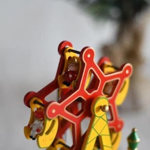 Você se lembrará da sua roda gigante favorita com esta roda de Madeira com detalhes pintados à mão, tocando música Natalina enquanto ele gira.
