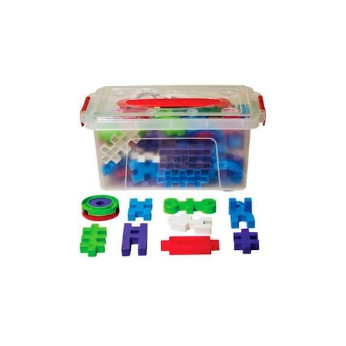Conjunto confeccionado em plástico, contendo 100 peças com diversos tipos de encaixe. Acondicionado em uma maleta medindo 27x17x12cm. Produto de qualidade comprovada. Educativos e Pedagógicos.