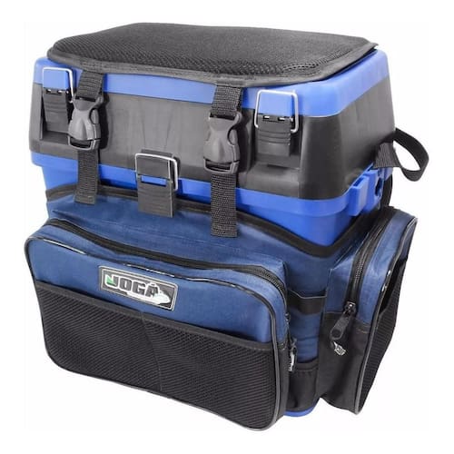 Fabricante: Jogá Modelo: Caixa Fishing Box Tampa assento suporta até 105Kg Peso interno de 8kg. Alça tipo mochila. Porta varas lateral. Bolsos externos. Compartimento Estanque