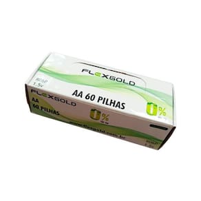 Caixa de Pilhas AA Zinco 60 unidades Flex Fx- Aaz60 A Pilha AA Zinco c/ 60 Unidades - Flex FX-AAZ60 é uma opção econômica e eficiente para alimentar diversos dispositivos eletrônicos de uso diário. Características Principais:• Modelo: FX-AAZ60• Tipo: Pilha Zinco-Carbono• Tamanho: AA (LR6)• Tensão Nominal: 1,5V• Quantidade na Embalagem: 4 unidades Descrição:As pilhas Flex FX-AAZ60 são produzidas com materiais de qualidade, garantindo eficiência e durabilidade em aplicações cotidianas. São ideais para dispositivos de baixo consumo energético. Aplicações Recomendadas:• Controles remotos• Calculadoras• Relógios de parede• Brinquedos eletrônicos• Agendas eletrônicas Observações:Não recarregável; destine as pilhas usadas conforme as orientações ambientais locais.Armazenar em local seco e à temperatura ambiente para preservar a vida útil.
