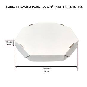 CAIXA PARA PIZZA OITAVADA REFORÇADA N° 36 COM 25 UNIDADES Dimensões: 36cmx36cmx4cm. Embalagem oitavada n. 36 é fabricada em papelão de melhor qualidade que as caixas encontradas no mercado. Além do papelão ser de melhor qualidade, ela tem altura lateral (abas) de 4,0 cm. Papelão com processo size press, que dá mais resistência a caixa, dando maior segurança no transporte de sua pizza. A Tamarozzi Embalagens atua no mercado desde 1995, e tornou-se referência em embalagens descartáveis. Hoje comercializamos um mix de embalagens que buscam valorizar seu produto, tendo como compromisso a qualidade, a confiabilidade de seus produtos e o respeito. A Tamarozzi Embalagens conta atualmente com representantes em todos os Estados do Brasil e uma rede de aproximadamente 3.000 distribuidores.