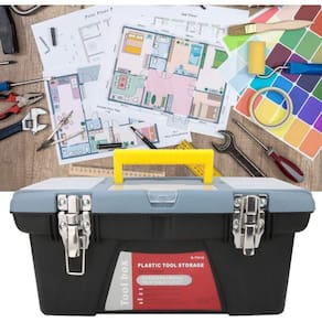 Caixa de plastico para ferramentas para embalagem 335x180x1 Caixa de plástico para ferramentas para embalagem A caixa de ferramentas multifuncional pode armazenar ferramentas como chave de fenda, chave inglesa, cortador de arame, alicates de crimpagem e mais. Existem caixas de parte na parte superior da caixa para acomodar parafusos, porcas, pregos e outras peças pequenas. Feito de material abs de alta qualidade, sólido e anti-impacto, não deforma facilmente. Design de trava de metal, seguro e confiável, fácil de abrir e fechar. Com uma alça de transporte, conveniente e prática, ideal para eletricistas, manutenção de veículos, uso doméstico.