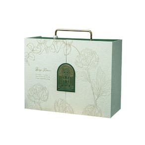 Material: Tamanho do papel: 18* 6,5* 12 cm Peso: 400 g Design elegante: apresenta uma sofisticada textura floral em relevo com alça metálica e selo frontal decorativo, criando uma apresentação refinada e luxuosa. Material de papel premium: feito de papelão resistente e de alta qualidade com acabamento fosco, garantindo durabilidade e um toque premium adequado para ocasiões sofisticadas. Alça conveniente: inclui uma alça de metal dourado com detalhes em pérola para facilitar o transporte, adicionando praticidade e elegância. Tamanho perfeito: mede 18 x 6,5 x 12 cm, ideal para itens pequenos, como acessórios, guloseimas ou lembrancinhas — adequado para casamentos, festas e embalagens de butiques. Uso versátil: projetado para caixas de damas de honra, eventos de aniversário ou embalagens de produtos de alta qualidade, combina perfeitamente com temas de decoração minimalista ou clássica.