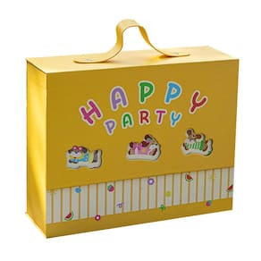 Material: papelão Tamanho: 21* 20* 7 cm Peso: 250 g Design divertido: a caixa apresenta uma alegre mensagem de “Feliz Festa” com letras coloridas e ilustrações fofas de animais, tornando-a uma escolha divertida para lembrancinhas ou pequenos presentes. Construção durável em papelão: feita de papelão resistente, esta caixa oferece armazenamento confiável para guloseimas, brinquedos ou pequenos presentes, mantendo sua forma durante o manuseio. Alça conveniente: a alça anexada facilita o transporte, tornando-a ideal para presentear ou como caixa de lembrancinhas para convidados em chás de bebê ou aniversários. Uso versátil: com seu design charmoso, esta caixa é adequada para uma variedade de ocasiões, como chás de bebê, festas de aniversário ou qualquer celebração que exija embalagens pequenas. Tamanho perfeito: medindo 21x20x7cm, esta caixa é espaçosa o suficiente para itens pequenos, como doces, lembrancinhas ou brinquedos pequenos, enquanto compacta o suficiente para facilitar o manuseio.