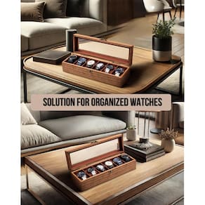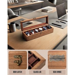 [Madeira maciça] Este organizador de caixa de relógio é habilmente feito de madeira maciça pura de alta qualidade com um padrão único e natural. Conhecidos por sua durabilidade e apelo atemporal, os produtos de madeira combinam com o estilo rústico e tornam esta caixa de relógio um investimento bonito e duradouro. [Forro fino] Caixa de relógio Exper City com parte superior de vidro transparente que oferece uma visão clara e desobstruída da sua coleção de relógios. Adornada com ferragens sólidas e forro de linho com material delicado e macio, esta caixa de relógio protege seus relógios de arranhões enquanto melhora sua beleza. [Grande armazenamento] A caixa de relógio de madeira é projetada com compartimentos de 5 cm, acomoda relógios com o maior diâmetro de mostrador de 51 mm. Disponível em vários estilos com 6, 12 compartimentos e 4 cores clássicas, esta caixa de relógio oferece amplo espaço para as necessidades da maioria das pessoas. [Organizador multifuncional] Retire o travesseiro e guarde o anel, o brinco, a gravata e a abotoadura no compartimento sobressalente, tornando a caixa do relógio um organizador multifuncional. A trava retrô de latão pode ser facilmente aberta com uma mão, facilitando tirar seus itens e manter sua mesa arrumada. [Único] A aparência única de cada caixa de relógio de madeira maciça é uma obra-prima em constante evolução que se torna mais charmosa ao longo do tempo. É o presente para entusiastas de relógios ou para quem procura uma maneira elegante e prática de guardar suas joias e pequenos itens - [Madeira maciça] O organizador da caixa de relógio é habilmente feito de madeira maciça pura de alta qualidade com um padrão único e natural. Conhecido por sua durabilidade e apelo atemporal, o produto de madeira é uma combinação clássica para o estilo rústico e torna esta caixa de relógio um investimento bonito e duradouro - [Forro de veludo] Caixa de exibição de relógio Exper City com parte superior de vidro transparente que oferece uma visão clara e desobstruída da sua coleção de relógios. Adornada com ferragens sólidas e forro de veludo delicado, material macio, esta caixa de relógio protege seus relógios de arranhões enquanto melhora sua beleza - [Grande armazenamento] A caixa de relógio de madeira é projetada com compartimentos de 5 cm, acomodando relógios com o maior diâmetro de mostrador de 51 mm. Disponível em 10 estilos com 6, 12 compartimentos e 6 cores, esta caixa de relógio oferece amplo espaço para as necessidades da maioria das pessoas - [Organizador multifuncional] Retire o travesseiro e guarde o anel, o brinco, a gravata e a abotoadura no compartimento sobressalente, faça da caixa do relógio um organizador multifuncional. A trava retrô de latão pode ser facilmente aberta com apenas uma mão, facilitando tirar seus itens e manter sua mesa arrumada - [Único] A aparência única de cada caixa de relógio de madeira maciça é uma obra-prima em constante evolução que se torna mais charmosa ao longo do tempo. É o presente para entusiastas de relógios ou para quem procura uma maneira elegante e prática de armazenar suas joias e pequenos itens