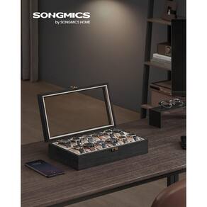 Suas coleções de relógios merecem uma caixa de relógio de qualidade, e esta caixa SONGMICS é uma boa escolha para colecionadores de relógios. Resumo das vantagens desta caixa de relógio de madeira SONGMICS com 12 compartimentos: - Rústico e elegante: dá aos seus relógios de bom gosto uma casa de bom gosto. - Resistente e protetor: Feito com madeira maciça e forro de veludo para proteção total. - Tampa de vidro: tornando-a uma ótima caixa de exibição de relógio e ajudando a encontrar seu relógio mais facilmente. - Almofadas de relógio: as almofadas macias mantêm seus relógios na forma correta. - Multifuncional: remova os travesseiros, e é ótimo para armazenar anéis, abotoaduras e colares. - Ótima ideia de presente: ideal para aniversários, aniversários e formaturas. Especificações: - Cor: preto ébano - Material: Madeira Paulownia, forro de veludo, vidro - Tamanho do produto: 21 x 35 x 8,5 cm. - Peso do produto: 1,2 kg Conteúdo da embalagem: - 1 caixa de relógio. Observações SONGMICS - Mantenha a caixa do relógio longe da umidade. - Para cuidados diários, limpe com um pano macio. - Estilo sua coleção de relógios] Com madeira maciça rústica com grão rico e um grande vidro transparente, esta caixa de relógio de madeira não apenas atende às suas necessidades de armazenamento, mas também acentua sua coleção de relógios e adorna seu espaço - Materiais de qualidade, proteção total] Feita com uma moldura de madeira maciça por fora e veludo macio por dentro, esta caixa de relógio oferece proteção total para seus relógios contra acidentes e arranhões. Os travesseiros macios e de suporte os mantêm em boa forma - [Armazena até 12 relógios] Com 12 compartimentos, esta caixa de relógio permite que você coloque seus relógios com um tamanho de mostrador de até 51 mm, tudo em um local conveniente, para que você possa encontrar facilmente o relógio certo sem procurar infinitamente - [Tampa de vidro transparente] Exiba seus relógios, mantenha seus relógios limpos de poeira, ajuda você a encontrar seus relógios mais facilmente ou decidir qual relógio usar hoje sem abrir a tampa - esta tampa de vidro preenche todas as caixas - [Presente para entes queridos] Seja para um aniversário, aniversário ou outros dias especiais, este suporte de relógio é um presente que induz sorrisos para qualquer entusiasta de relógios