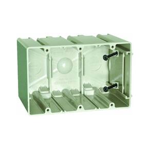 Caixa elétrica ajustável de três grupos para uso com cabo revestido não metálico. ; Nome da marca: Allied Moulded Sub Marca: SliderBox Capacidade: 61 em Forma: Retângulo Material: Policarbonato Número de Gangues: 3 grupos Tipo de produto: Caixa de saída Cor: Bege Altura: 3-3/4 polegadas. ETL listado: Não resistente ao clima: Sim Tamanho do nocaute: 1,27 cm. Listado na UL: Sim listado na CSA: nenhum número no pacote: 1 pacote Aplicação: luminárias de teto ou parede Tipo de embalagem: Tipo de caixa a granel: Parede resistente ao fogo por até 2 horas