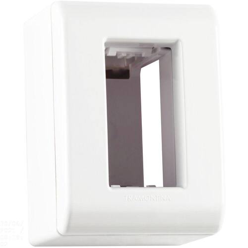 A Caixa de Sobrepor 1 Posto Tramontina LizFlex Branca é a escolha ideal para completar seus ambientes e agregar eficiência para suas instalações elétricas. Perfeita para quem busca o melhor para seus projetos, ela proporciona rapidez e flexibilidade em suas obras, já que sua instalação fica perfeita e não demanda transtornos como quebras de paredes e dispensa o uso de parafusos. Ela é fabricada em termoplástico na cor branca e é composta por caixa e tampa com encaixe de pressão. Possui ainda sistema modular e janelas para inserir canaletas de diferentes dimensões. Com a Tramontina, você tem a garantia de espaços funcionais e cheios de estilo! Orientações . Características Gerais EAN13 7891435052190 DUN14 17891435052197 NCM 3925.90.90 Peso Líquido 0,0400 kg. Peso Bruto 0,0440 kg. Metragem 0,000280 m³. Dimensões Embalagem (Compr. X Larg. X Alt.) 100x 70x 40 mm. Dimensões Produto (Compr. X Larg. X Alt.) 71x 52x 43 mm. Cor 1 FFFFFF Hexa Observações A instalação e segurança: É importante que o produto seja instalado por profissional habilitado. Antes de instalar, desligue a energia elétrica.