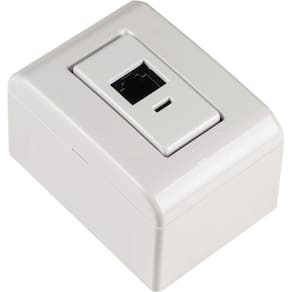 Complete sua casa e garanta o que há de melhor para suas instalações, com a Caixa de Sobrepor com 1 Tomada RJ45 Cat.6 Tramontina LizFlex Branca. Perfeita para quem busca o melhor para seus projetos, ela proporciona rapidez e flexibilidade em suas obras, já que sua instalação fica perfeita e não demanda transtornos como quebras de paredes e dispensa o uso de parafusos. Ela é fabricada em termoplástico na cor branca e é composta por caixa, tampa com encaixe de pressão e módulos. Além de contar com sistema modular, possui janelas para inserir canaletas de diferentes dimensões. Com a Tramontina, você tem a garantia de espaços funcionais e cheios de estilo! Orientações . Observações A instalação e segurança: É importante que o produto seja instalado por profissional habilitado. Antes de instalar, desligue a energia elétrica. Características Gerais EAN13 7891435054118 DUN14 17891435054115 NCM 8536.90.90 Peso Líquido 0,0550 kg. Peso Bruto 0,0600 kg. Metragem 0,000350 m³. Dimensões Embalagem (Compr. X Larg. X Alt.) 100x 70x 50 mm. Dimensões Produto (Compr. X Larg. X Alt.) 71x 52x 43 mm. Cor 1 FFFFFF Hexa