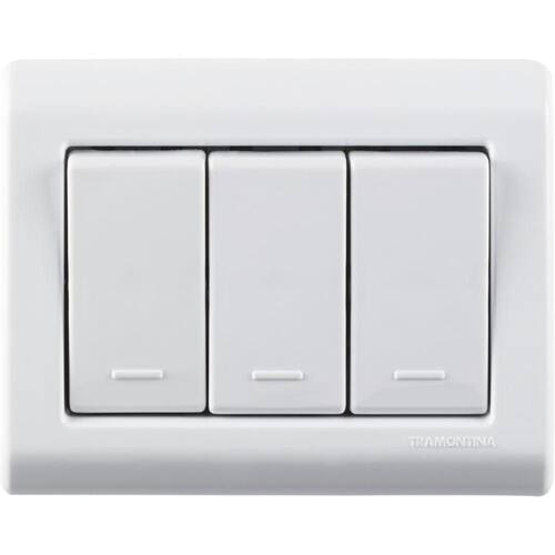 Caixa De Sobrepor Com 3 Interruptores Simples 10 A 250 V Tramontina Lizflex Branca Caixa de Sobrepor com 3 Interruptores Simples 10 A 250 V Tramontina LizFlex Branca Ilumine seus ambientes com maior qualidade e funcionalidade com a Caixa de Sobrepor com 3 Interruptores Simples 10 A 250 V Tramontina LizFlex Branca. Perfeita para quem busca o melhor para seus projetos, ela proporciona rapidez e flexibilidade em suas obras, já que sua instalação fica perfeita e não demanda transtornos como quebras de paredes e dispensa o uso de parafusos. Ela é fabricada em termoplástico na cor branca e é composta por caixa, tampa com encaixe de pressão e módulos. Além de contar com sistema modular, possui janelas para inserir canaletas de diferentes dimensões. Com a Tramontina, você tem a garantia de espaços funcionais e cheios de estilo!