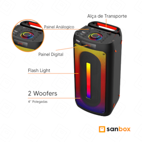 Seu design é totalmente encantador! O painel Digital e as principais funções da caixa estão localizadas na parte superior frontal e além de vir incluso um Controle Remoto proporcionando mais conforto e praticidade. A PCX 4500 conta com alças para facilitar o transporte.