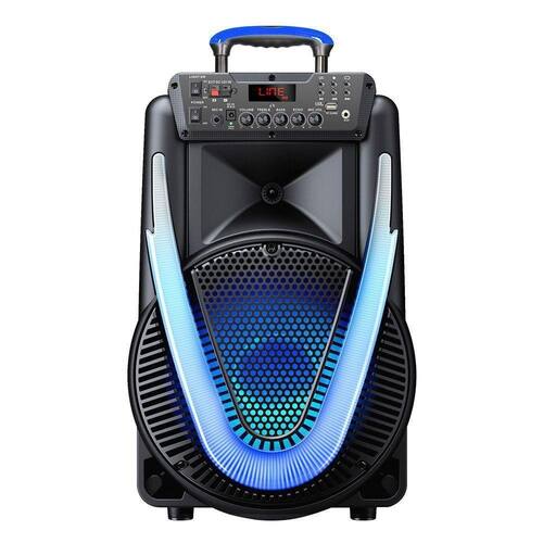 CARACTERÍSTICAS TÉCNICAS Potência: 800W RMS; Frequência de resposta: 20 ? 15K HZ; Sensibilidade: 70DB; Impedância: 4 OHMS; Driver: 15 polegadas; Versão Bluetooth: 5.0; Conexão: BT/AUX/USB/SD/FM/P10/TWS; Compatibilidade com cartão de memória e Pen Drive de até 32GB; Capacidade da bateria: 2.200 MAH; Duração da bateria: até 5 horas com 50% do volume máximo; Tempo de recarga: 5 ? 6 horas; Peso: 8,5 KG.