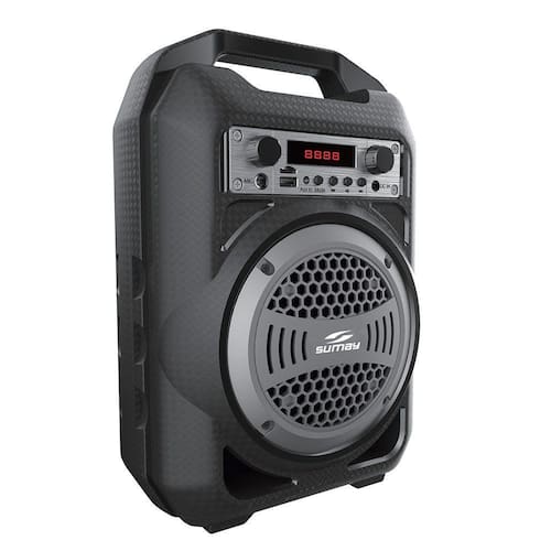 - Ultraleve - Potência: 30w - Suporta dispositivo USB e Cartão de Memória SD (em arquivo MP3) - Rádio FM estéreo - Alto-falante com luz de LED colorida - Controlador de volume no painel frontal - Função Bluetooth - Display de LED integrado - Cor: Cinza