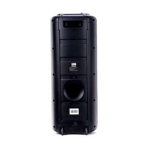 Características técnicas: Potência: 2000W Tamanho do alto falante: 10 Quantidade de alto falantes: 2 Tweeter: 31 Quantidade de tweeter: 1 Equalizador: Sim Rádio: Não Função TWS / POWER X: Sim Função gravar: Sim Função passa pasta: Sim Alça de transporte: Sim Iluminação Led: Sim Display LED: Sim Painel touch: Não Encaixe tripé: Não Empilhável: Não Rodas de transporte: Sim Material: Polietileno Microfone incluso: Não Controle remoto: Sim Frequência: 50-60HZ Frequência alto falante Hz: 20-20K Frequência tweeter Hz: 8K-20K Total distorção harmônica : 1 Sensibilidade -dB-: 95dB Função prioridade microfone: Sim Entrada microfone ou instrumentos: Sim,2. 1 de microfone e 1 de intrumentos Bateria recarregável: Sim Duração da bateria: 4h Tempo para carregamento da bateria: 4h Impedância -Ohms-: 4#8486; Consumo aproximado de energia: 90W Bluetooth: Sim Entradas: AUX/CARD/USB Suporta pendrive e cartão de memória até: 16GB Qtd. de captadores: Não possui