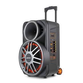 As suas músicas agora com a melhor qualidade de som e toda a vibração de 600W de potência e um alto-falante de 12”! Os leds rítmicos coloridos criam uma atmosfera ainda mais festiva, além de bateria interna recarregável com autonomia de 2,3 horas, bluetooth, entrada USB, Micro SD e até P10 para microfone. Tem também a função TWS que permite a conexão entre duas caixas iguais para criar um efeito estereofônico e pode ser carregada para qualquer lugar com a ajuda da alça de transporte e das rodinhas.