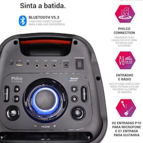 A Caixa de Som Amplificada Philco PCX10101 é perfeita para quem busca potência elevada, som de qualidade e praticidade para animar festas, eventos e reuniões. Com 2000W de potência, oferece áudio forte e bem definido, com graves intensos e excelente alcance sonoro.A conectividade Bluetooth garante pareamento rápido e estável com smartphones, tablets e outros dispositivos, permitindo reproduzir suas músicas sem o uso de cabos. Além disso, conta com entrada USB e entrada auxiliar P2, ampliando as opções de reprodução.Para deixar o ambiente ainda mais animado, a caixa dispõe de efeitos de luz integrados, que criam uma experiência visual envolvente e destacam o clima da festa. Seu design robusto e moderno garante presença marcante em qualquer espaço.Pensando na versatilidade, a Philco PCX10101 possui entrada para microfone, ideal para karaokê, apresentações e anúncios, além de rádio FM com memorização de estações e painel de controle intuitivo, facilitando o ajuste das funções no dia a dia.Com funcionamento bivolt, a Caixa de Som Amplificada Philco 2000W Bluetooth PCX10101 entrega potência, mobilidade e desempenho para qualquer ocasião.