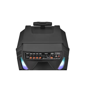 Especificações Técnicas: • Potência de saída: 500W RMS; • Rádio: FM; • Display: LED; • Alça de Transporte: Sim; • Rodas de Transporte: Sim; • Função Gravação: Sim; • Leitor de cartão: Sim; • Alto-falantes: 1 alto-falante de 12 polegadas e 1 Tweeter; • Conectividade: Bluetooth 5.0, Função TWS e Cabo USB 2.0; • Controle de Som: Eco, Grave e Agudo; • Acompanha Microfone: Sim; • Entrada Auxiliar: USB, P2 e Microfone ou Instrumentos; • Alimentação: Adaptador Bivolt (110V/240V AC); • Bateria: 3.7V / 3.600 mAh Lithium Recarregável;
