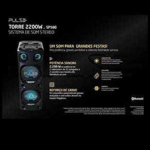 A Caixa de Som Amplificada Pulse SP500 - 2200W Bleutooth Extra Potente, desenvolvida com 2.200w de potência em 2 subwoofers de 12 polegadas e 2 tweeters que elevam a qualidade sonora ao máximo, devido a sua função megabass.