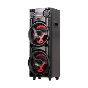 Seu design é totalmente encantador! O painel em LED e as principais funções da caixa estão localizadas na parte superior frontal para proporcionar mais conforto e praticidade. A New X conta com rodinhas e alças para facilitar o transporte. Além disso, os altos falantes e a Letra X da caixa de som, chama muita atenção por possui um incrível show LED que pisca conforme o ritmo da música.