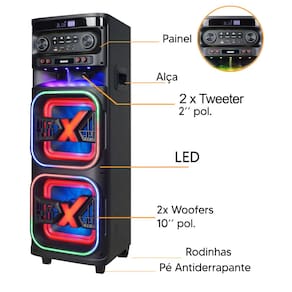 Equipada com woofer de 10”, essa caixa oferece graves encorpados, médios presentes e agudos nítidos, garantindo uma experiência sonora completa. Além disso, a tecnologia TWS (True Wireless Stereo) permite parear duas caixas Amvox compatíveis para dobrar a potência e criar um ambiente ainda mais imersivo.