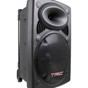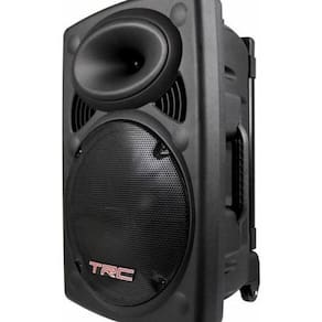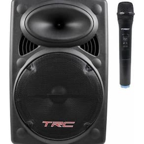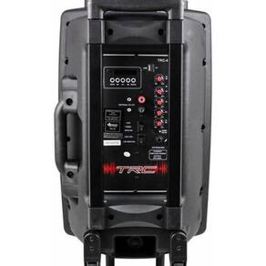 A caixa de som amplificada trc 436 da trc funciona sem a necessidade de fios e pode ser conectada a qualquer dispositivo usando a tecnologia bluetooth. Ela tem bateria recarregável que oferece de 3 a 5 horas de autonomia. Com 350w de potência, possui entradas usb, auxiliar, cartão sd, entrada p10, e microfone sem fio, além disso possui iluminação frontal em led com botão liga/desliga.