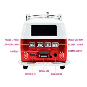 Caixa de Som Bluetooth Fusca Azul USB Vintage Portátil Caixa de Som Bluetooth Fusca Azul USB Vintage Portátil - Leve sua paixão por música e design para outro nível com este modelo exclusivo que une estilo, qualidade sonora e praticidade. Inspirada no clássico e inesquecível Fusca, esta caixa de som portátil é perfeita para quem valoriza peças que contam histórias e que transformam qualquer ambiente em um espaço cheio de personalidade. Seja para uso pessoal, decoração ou presente, ela combina o charme retrô com a tecnologia atual para entregar a melhor experiência possível. Com acabamento impecável e detalhes realistas que remetem ao icônico automóvel, esta caixa de som vai muito além de um simples dispositivo de áudio. Ela é uma peça de colecionador funcional, ideal para quem ama carros vintage e busca um toque diferenciado na decoração. Sua tecnologia Bluetooth oferece conexão rápida e estável com smartphones, tablets e notebooks, eliminando a necessidade de fios e garantindo liberdade de uso em qualquer lugar. Apesar do tamanho compacto, seu desempenho surpreende. A potência de 10W proporciona áudio claro, equilibrado e com graves definidos, ideal para ouvir suas playlists favoritas, podcasts ou rádios FM graças à faixa de frequência de 88MHz a 108MHz. O design portátil e leve facilita o transporte, permitindo levar a música para festas, encontros e viagens. Especificações Técnicas: - Dimensões aproximadas: 7cm altura x 9cm largura x 20cm comprimento - Potência: 10W - Tecnologia Bluetooth com alcance de até 10 metros - Bateria de Lítio 1800mAh recarregável - Tempo de reprodução: até 6 horas - Tempo de carregamento: cerca de 3 horas - Luz LED decorativa - Entrada USB e Cartão SD - Entrada Auxiliar P2 - Entrada DC 5V - Rádio FM 88MHz-108MHz - Material: Plástico de alta qualidade e componentes eletrônicos Itens Inclusos: - 01 Caixa de Som Bluetooth Fusca Azul - 01 Cabo USB - 01 Cabo P2 - 01 Manual de instruções Sua versatilidade é outro ponto forte. Além de reproduzir áudio via Bluetooth, você pode utilizar entradas USB, cartão SD ou conexão auxiliar P2. A luz LED integrada adiciona um toque visual extra, tornando a experiência ainda mais marcante, seja em um ambiente interno ou ao ar livre. : este produto conta com de 3 meses contra defeitos de fabricação, assegurando que você receba um item de qualidade e possa aproveitar sua caixa de som com tranquilidade e confiança. Nosso compromisso é oferecer um produto que una durabilidade, design diferenciado e som de alta qualidade. Homologação Anatel: 005491708855 Marca: Não Informado