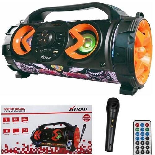 MARCA: XTRAD MODELO: XDG-38 Potência de saída RMS 100 W Quantidade de alto-falantes4 Tipos de filtros do alto-falante Ativo/Passivo Caixa de som XDG-38 com autonomia de até 4hs. Possui Bluetooth com um som incrível e design compacto. Muito leve e totalmente portátil. Possui Bluetooth com um som incrível e design compacto. Muito leve e totalmente portátil. Possui entrada para portas USB, micro USB e cartão micro SD, auxiliar P2 para se conectar a outros dispositivos como PC, desktop e celulares. Possui sistema multifuncional com rádio FM, onde você poderá sintonizar até 6 rádios preferidas e reproduzir em um som alto e nítido por meio de 2 alto-falantes laterais de 5.25. Função karaokê para caixa de violão, guitarra, etc. Características: Informações do produto: - Bluetooth: Sim - Cor: - Potência: 100W - Consumo: 0,10 KWh - Entrada Usb - Entrada Micro Sd - Entrada Auxiliar - Display Digital - Rádio Fm - Controle Remoto - 2 Entradas para Microfone guitarra, baixo etc - Função Eco - Equalizador Digital - Gravador Digital - Flash Lights - Alça para transporte - Bateria Interna Recarregável - Bivolt Automático - Função atender chamadas. possui microfone interno - Pode ser Utilizado enquanto carrega. - Possui grave de qualidade. - Display LED identificador de funções - Possui alça para carregamento - Compatibilidade com Microfone, Violão, Guitarra e etc. P10 - Acabamento em plástico de alta resistência Homologação Anatel: 060792000160