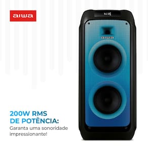 Você está pronto para uma experiência sonora incrível? A PartyBox AWS-PB-05 combina a potência impressionante de 200W RMS e a qualidade sonora do DNA japonês da AIWA. A caixa de som é composta por um sistema de 2 vias: os 2 woofers de 7’’ e o tweeter de 1,5’’ criam graves impactantes e agudos mais nítidos. Já a bateria pode durar até 20 horas ininterruptas fora da tomada e a função RGB Color Lights, com o adicional de efeito flame, cria um cenário vibrante e repleto de cores. Saiba mais sobre a PartyBox AWS-PB-05 da AIWA: