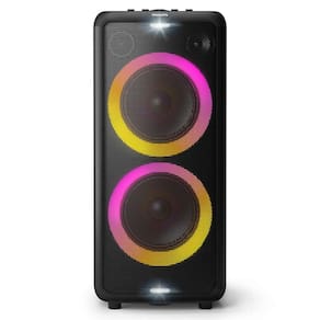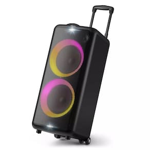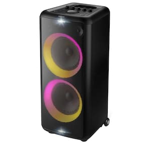 Agite a festa com esta incrível caixa de som extragrande! Som poderoso, graves potentes e luzes coloridas enchem o ambiente com boas vibrações. Você pode conectar uma guitarra e um microfone à caixa de som.