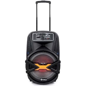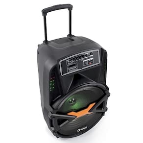 As rodinhas facilitam o transporte da caixa de som e o design é pensado para combinar com tudo, conta com luzes de LED, dando outra cara para os seus eventos!