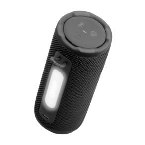 Auracast E com a conexão Auracast™, é possível parear várias caixas JBL e curtir um som estéreo envolvente. Tudo isso com design moderno, materiais reciclados e compatibilidade com o aplicativo JBL Portable.