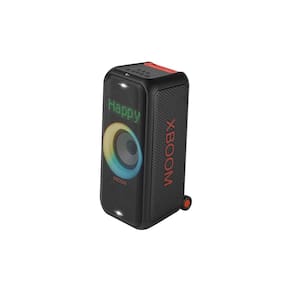 Woofer de 8 polegadas com 250W de potência, Iluminação multicolorida e Pixel Led personalizável, Alça telescópica e rodas: Leve para onde quiser, Até 20h de bateria, Entrada de microfone e violão - Cante com a música, IPX4: resistente à respingos de água EM GERAL Número de canais 2.1ch (2Way) Potência de saída 250 W CONECTIVIDADE USB 1 Versão Bluetooth 5.1 CONFORTO multiponto Sim Emparelhamento sem fio (modo duplo) Sim Emparelhamento sem fio (Modo múltiplo) Sim Gerenciador de atualização (FOTA) Sim Bluetooth App (Android/iOS) Sim Iluminação Sim À prova de água/respingos IPX4 Indicador de bateria Sim Trava de segurança Sim DIMENSÃO (LXAXD) Auto-falante 310 x 700 x 316 mm Caixa de papelão 812 x 436 x 380 mm PESO Peso bruto 18,5 kg Peso líquido 15,5 kg ACESSÓRIO Cartão de garantia Sim Adaptador AC Sim EQ Reforço de Som Sim Padrão Sim EQ personalizado (APP) Sim FONTE DE ENERGIA Conector do Adaptador AC Sim CONSUMO DE ENERGIA Modo de inicialização 65 W Modo de espera 0.5 W AUTO-FALANTE Unidade de Woofer 8" x 1 Tamanho da Unidade do Tweeter 2.5" x 1 Tipo de unidade de tweeter Cone FORMATO DE ÁUDIO AAC Sim SBC Sim BATERIA Tempo de carregamento da bateria (Hrs) 3.5 Duração da bateria (HRS) 20 CÓDIGO DE BARRAS Código de barras 7893299928765 *
