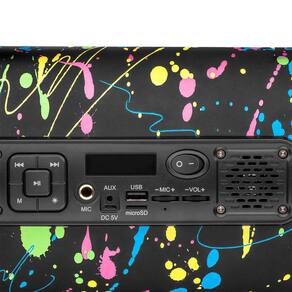 Uma caixa de som com bluetooth e 120W de potencia A Paint Blast foi desenvolvida para te oferecer maior potencia, são 120W de potencia em 2 alto-falantes (Tweeter 1.4 polegadas + Subwoofer 4 polegadas) que trazem alta fidelidade ao som. Ela conta com LEDS decorativos nos radiadores passivos que deixam sua Paint Blast preparada para animar ainda mais a sua festa!