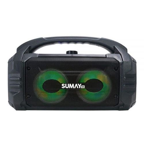 a caixinha de som bluetooth sumay sunbox sm-csp1304 - 50w rms é um novíssimo lançamento da sumay pensada para quem gosta de portabilidade, bateria de longa duração e que caiba em qualquer espaço. por ser uma caixinha ultraleve de 1,5kg e com alça, você poderá leva-la a qualquer lugar, à praia, ao clube, a cachoeira ou qualquer lugar sem muito esforço, tudo isso aliado a uma bateria de longa duração de 06 horas média. com 50w rms, você poderá dobrar a potência da sua sunbox com a função tws, que é conectar sem fios a um único celular duas caixas ao mesmo tempo. Além de ser uma linda caixinha boombox com ledS nos falantes que irão chamar a atenção nas suas festas. quer fazer um karaokê divertidíssimo A sunbox possui entrada p10 para você conectar um microfone, além de entrada auxiliar que poderá conectar a uma tv ou pc e soltar a voz no seu karaokê. a sunbox possui conexão bluetooth, entrada para pendrive, e p10.