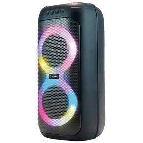 Equipada com bateria interna de longa duração, oferece até 3 horas de reprodução contínua a 80 do volume, garantindo diversão sem interrupções. O carregamento é simples e rápido, utilizando fonte de alimentação DC 5V - 1A.