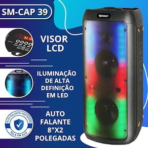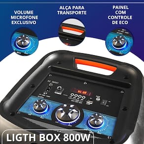 A Caixa de Som Light Box, da Sumay, possui potência de 800W para animar toda a festa, conexão bluetooth, além de uma incrível bateria que não irá lhe deixar na mão.Uma bateria que te proporciona horas de diversão! A Light Box conta com uma incrível bateria recarregável de 7200mah, assim você não precisa mais se preocupar com ficar procurando tomadas, basta apenas deixa-la carregada antes de sair. Sobre a marca: qualidade Sumay! Hoje uma das marcas com maior atuação no mercado de produtos tecnológicos, a Sumay se estabeleceu com mais de 10 anos de trabalho como uma empresa de produtos de qualidade e preços acessíveis.