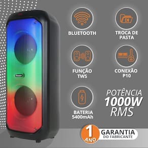- Potência Sonora Imersiva: 1000W RMS para um som potente e claro, ideal para festas, eventos ou uso pessoal.
