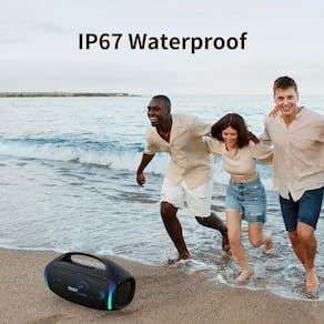 Classificação IP67 robusta Não importa se você está caminhando nas montanhas, relaxando na piscina ou aproveitando um dia na praia, você pode levar o TRIBIT StormBox Blast 2 com você sem se preocupar com danos causados ??pela água.