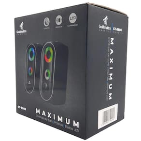 Caixinha de som gamer com led rgb para computador pc - mais potência e maior qualidadeA caixa de som goldenultra gt-r600 é ideal para ser utilizada no pc para ouvir músicas, filmes, jogos e vídeos. Ela possui um alto-falante de 12w que emite um excelente som, com graves e agudos equilibrados na medida certa. Com um acabamento sofisticado e muitas luzes de led rgb para seu ambiente ficar mais descontraído e bonito.Especificações:- som potente de excelente qualidade, limpo e com ótimos graves- arcos de led com diversos efeitos de luz rgb- conector usb e p2- alto-falante com potência de 12w, são de longo alcance- opções de cores rgb ideais para o seu estilo- botões de ajuste de volumeFicha tecnica:- marca: goldenultra- modelo: gt-r600- medida: 17cm x 8cm x 10cm altura, largura, profundidade - potência: 12w- potência em rms: 5w x2- fonte de alimentação: usb 5v- frequência: 25hz-20khz- alto falante: 2.5x2 =polegadas - impedância: 4 ohms- snr: =65db- canal: 2.0- peso: 850gItens inclusos:- 1 caixa de som para pc