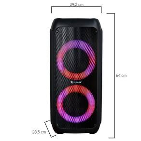 Equipado com 400W RMS e uma potência musical de 800BT. A caixa da Sumay é equipado com dois alto-falante de 6.5 polegadas e um tweeter de 5 polegada. Além disso, a caixa de som tem uma bateria interna recarregável, que possui uma autonomia de até 5 horas com 80 por cento do volume. Para recarregar a bateria, basta aguardar cerca de 4 horas para carga completa.