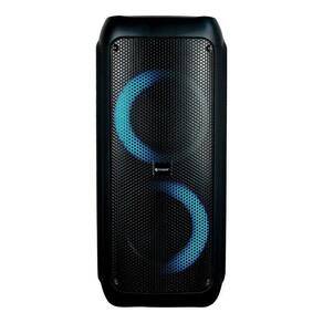 A caixa tem um design elegante e minimalista! O painel com as principais funções e display estão localizados na parte superior da caixa, oferecendo extremo conforto e praticidade. A Power Box consegue animar qualquer ambiente, graças ao incrível show de LEDs presente no aparelho.